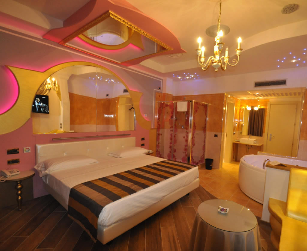 Questo importantissimo progetto nasce dalla grande competenza ed estrosita del suo proprietario che ha voluto dare un impronta della sua struttura unica nel suo genere ogni camera e’ stata disegnata e progettata con uno stile ed un tema differente che mescola culture di altri paesi un progetto veramente entusiasmante ma anche molto complesso che si e rivelato a lavoro ultimato una straordinaria e fantastica opera d’arte.